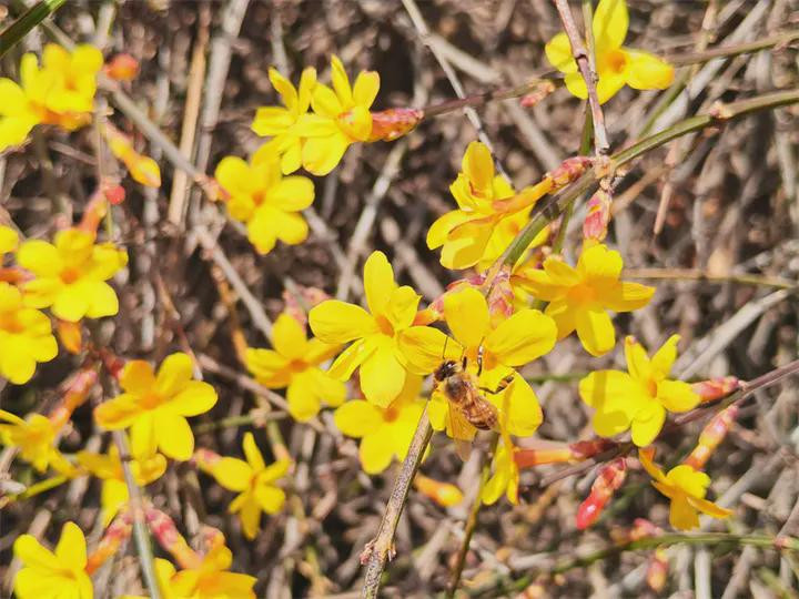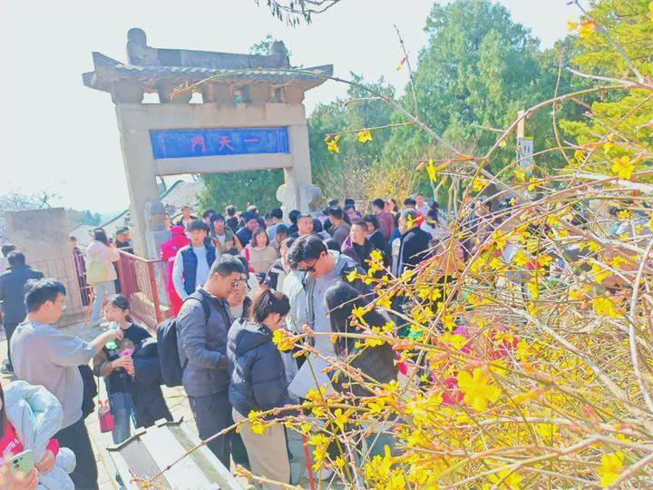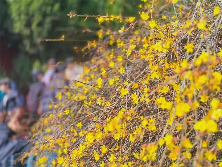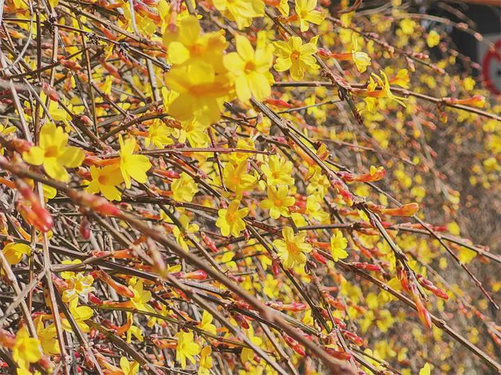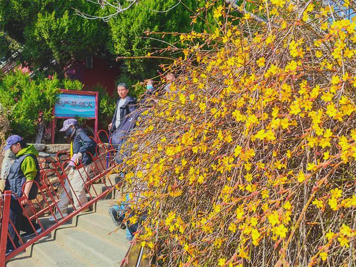 中华泰山网讯丙午马年新春佳节,泰安天气晴好。在泰山中路登山起始点一天门附近,一丛丛金黄的迎春花悄然攀上枝头,在料峭寒风中绚烂盛开,成为春节假期一道亮丽的风景线,引得过往游客纷纷驻足留影。