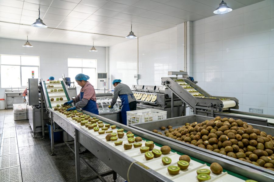 工人正在分拣猕猴桃